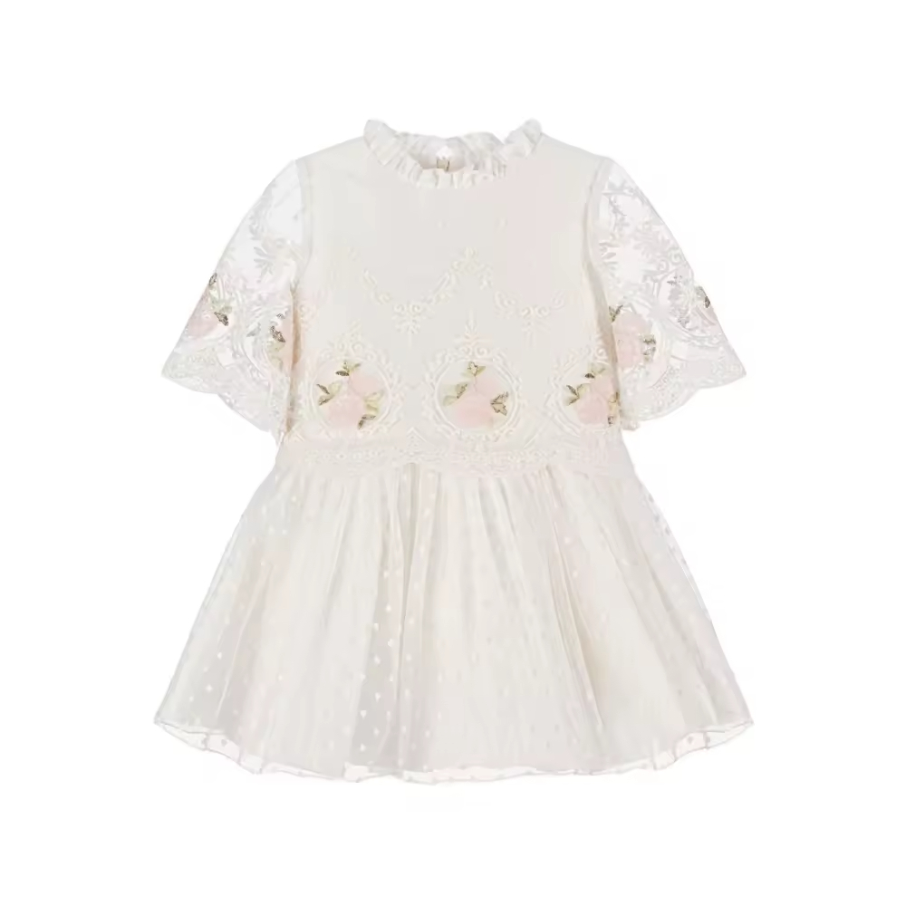 Elegant Infant Dresses Girls Age Group Children Plus Size Floral Pattern O-Neck Sustainable Cotton Dress Summer-for 9 Years Old