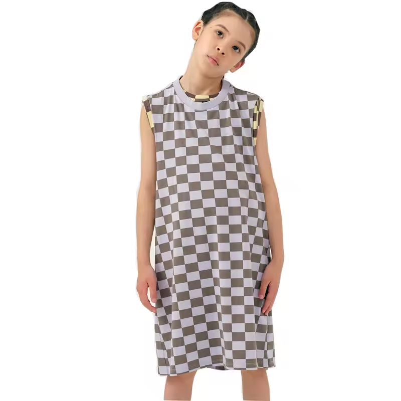Custom Made Girls Cotton Summer Dress Latest Fashion Checkered Sleeveless for Kids ODM Supply