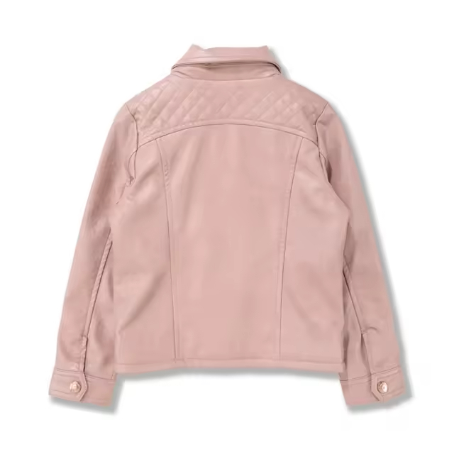 Cool Design Formal Kid Leather Jacket Zipper Closure Parkas Outerwear Coats for Girls