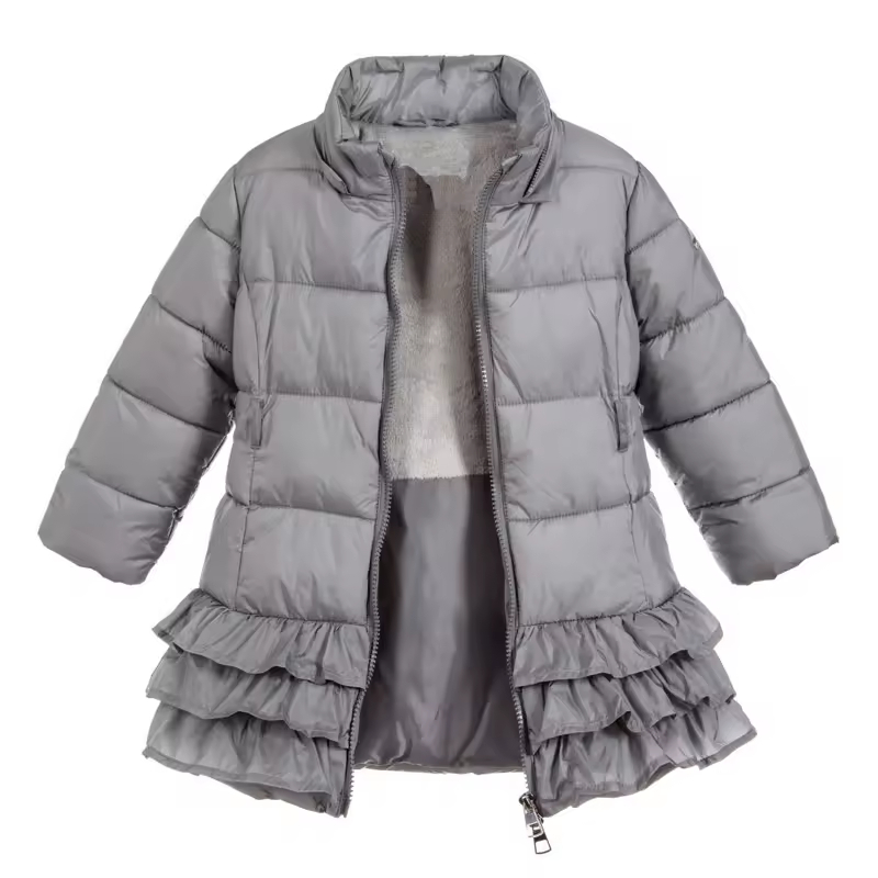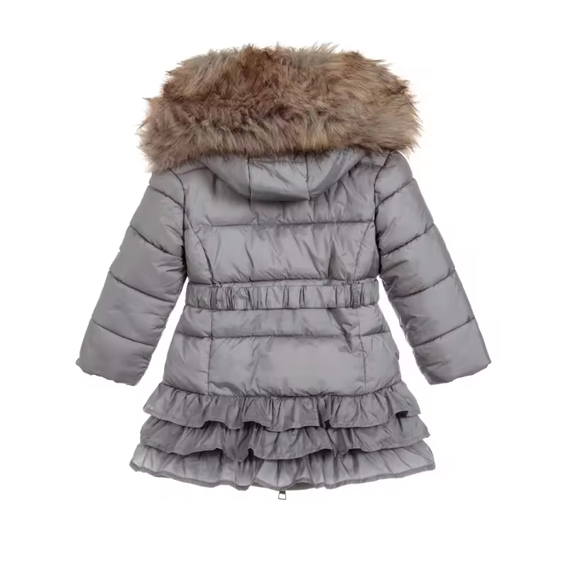 Best-selling Europe America Girls Casual Long Coat with Zipper Closure Detachable Collar Ruffled Hem Trims Perfect Outerwear