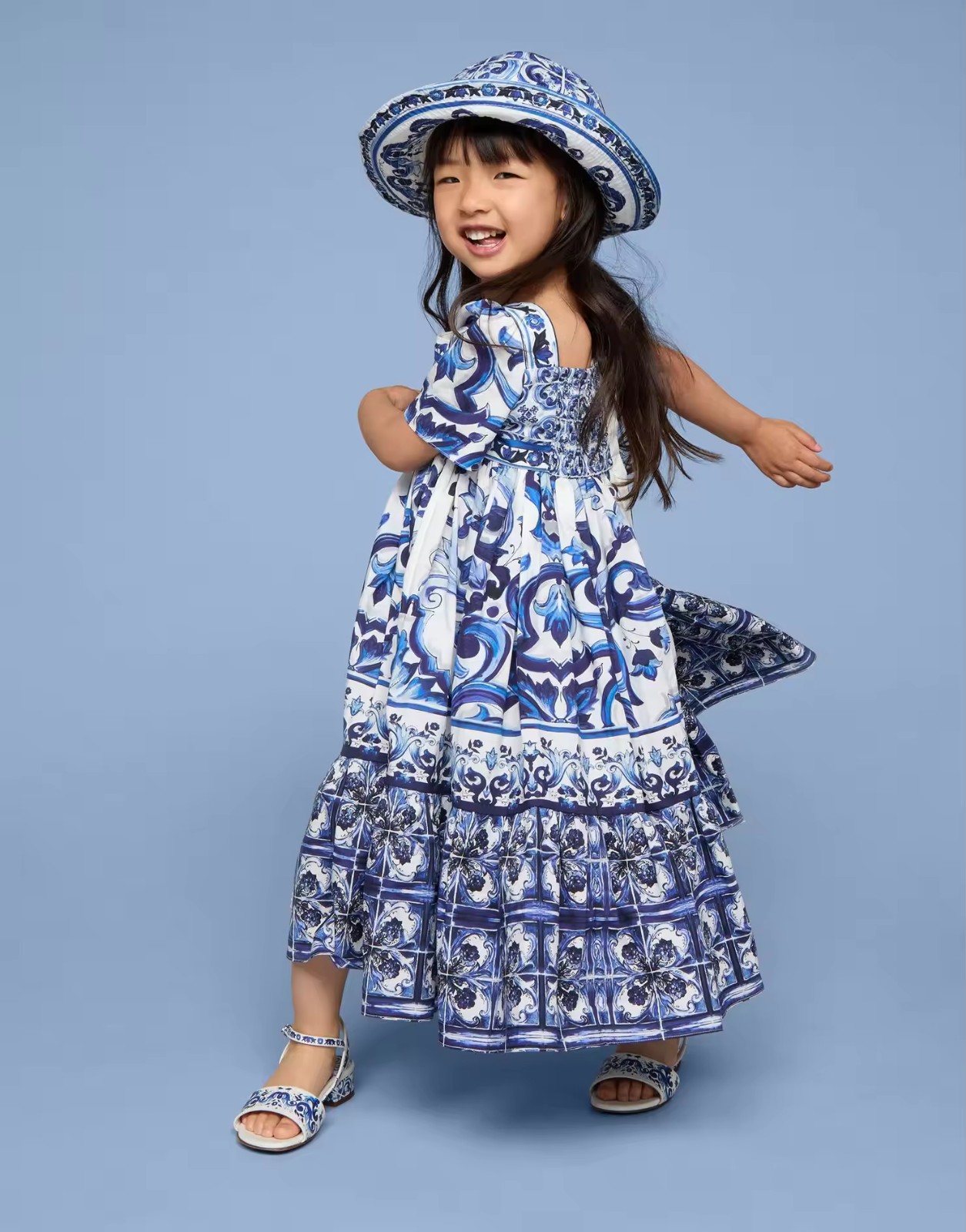 Newest 100% Cotton Short-Sleeved Girls' Dress for Kids Summer Plus Size ODM Floral Print Long Length
