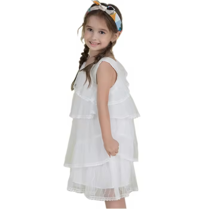OEM Customizable Cute Girls Party Dress Latest Fashion Solid Woven Fabric Summer New Style with Sweet Ruffles Decoration