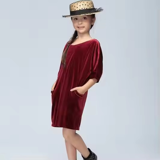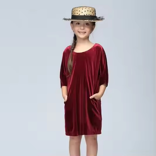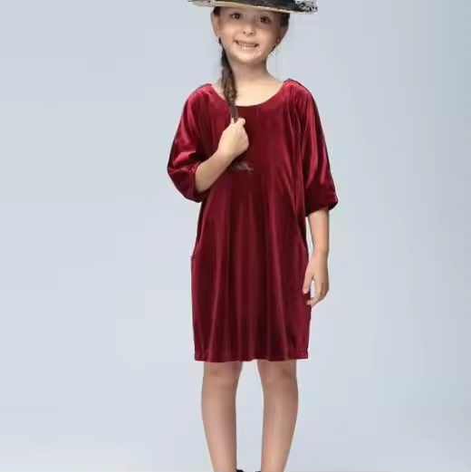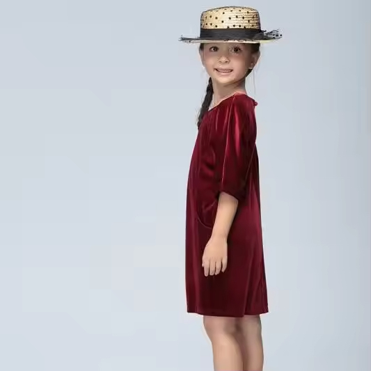 Vintage Retro Girl Dress Long Sleeve Velvet Casual Style Solid Pattern Spanish Dresses for Children Children's Clothing Factory