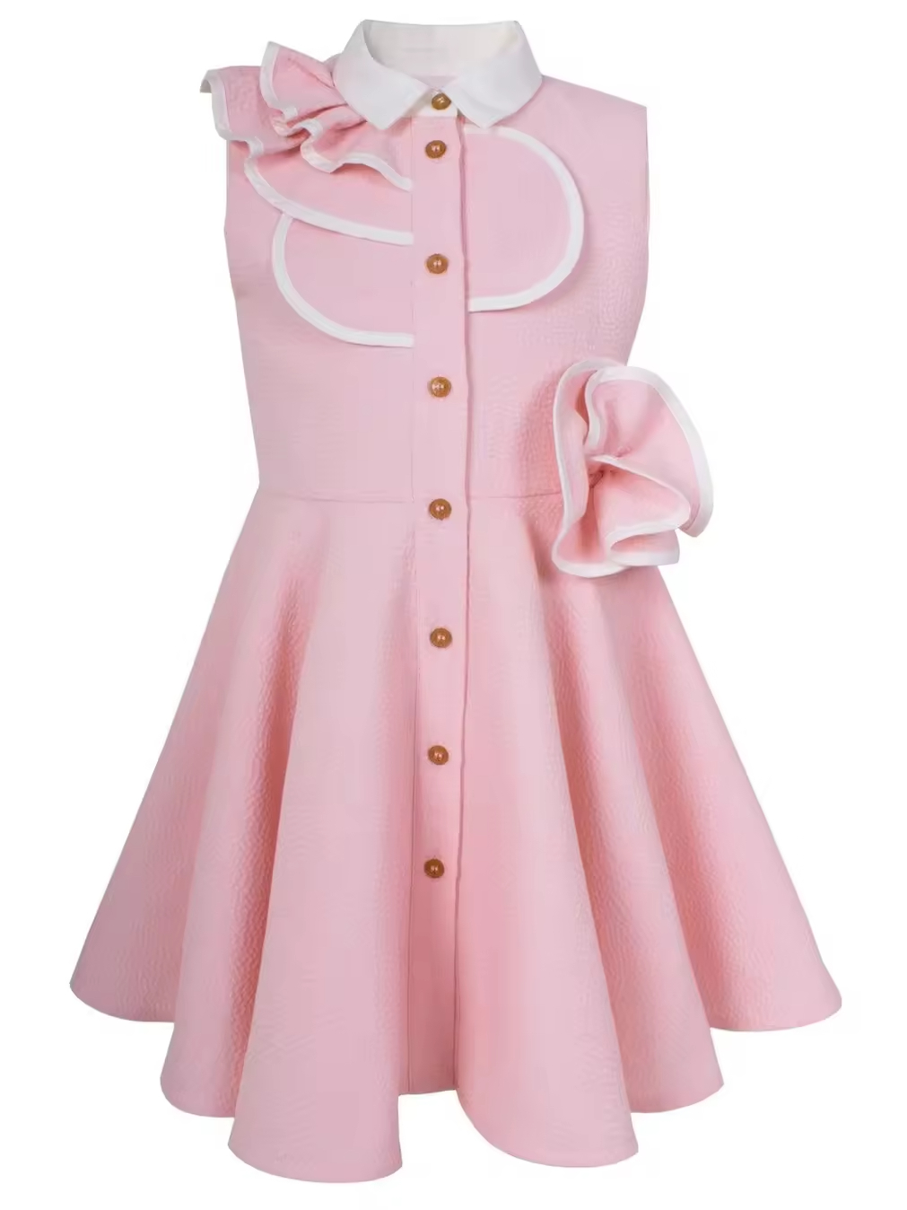 1.Girls Dress in White/black color, quality cotton fabric and a vintage style.