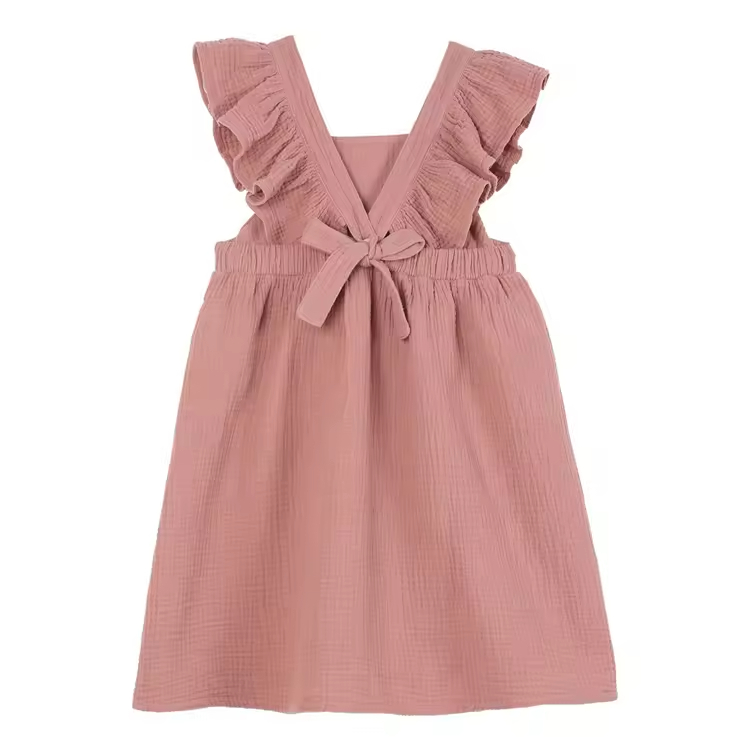 Custom High Quality Baby Clothes Summer Taffeta Fabric Sleeveless Solid Color Ruffle Simple Design Birthday Girls Backless Dress