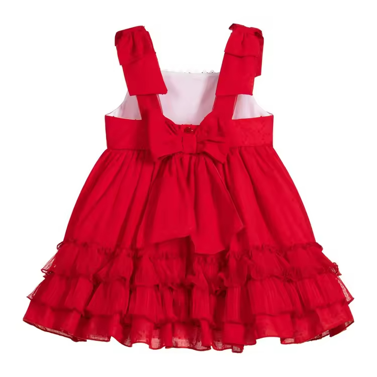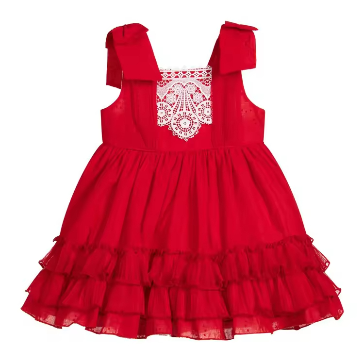 Customized High End Design Red Color Fashion Girls Dresses Knee Length Beautiful Party Sleeveless Girl Child Dress With Bowknot