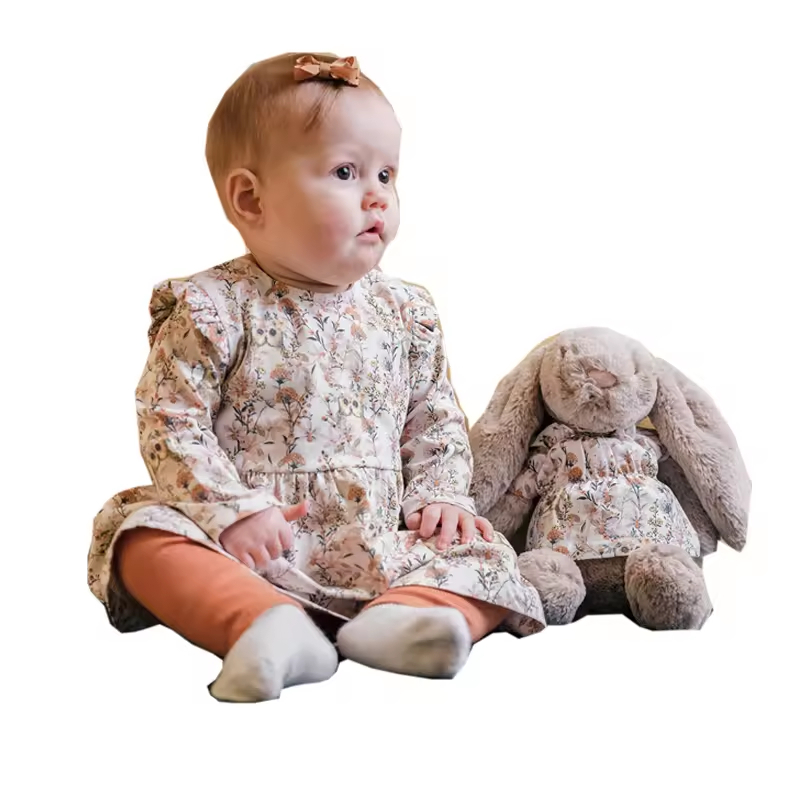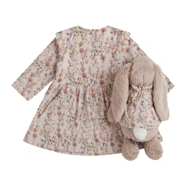 /Customized Sizing Lovely Design Cotton Woven Floral Bow Casual Spring Doll Baby Matching Dresses for Toddler Girls