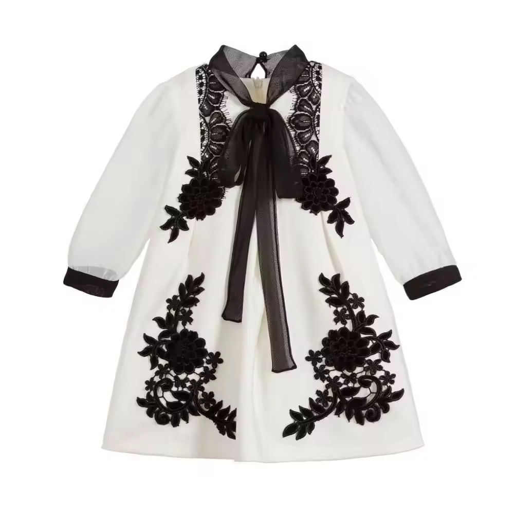 1.Girls Dress in White/black color, quality cotton fabric and a vintage style.