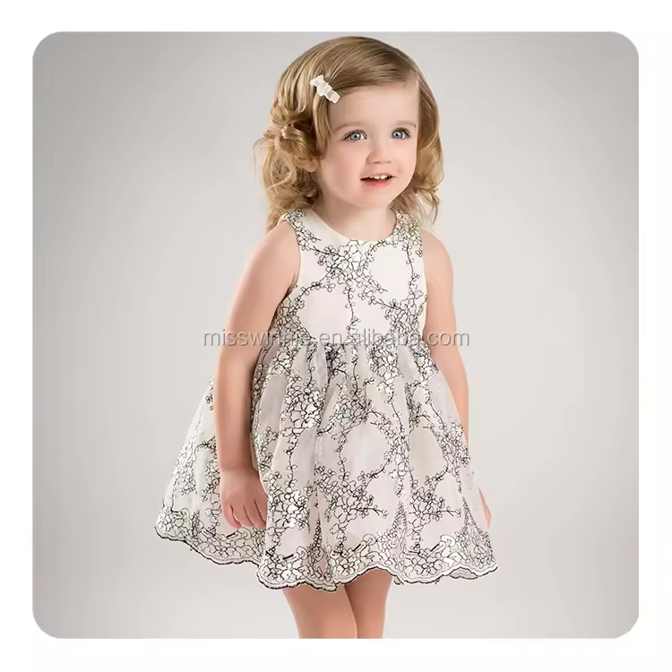 1.Girls Dress in White/black color, quality cotton fabric and a vintage style.