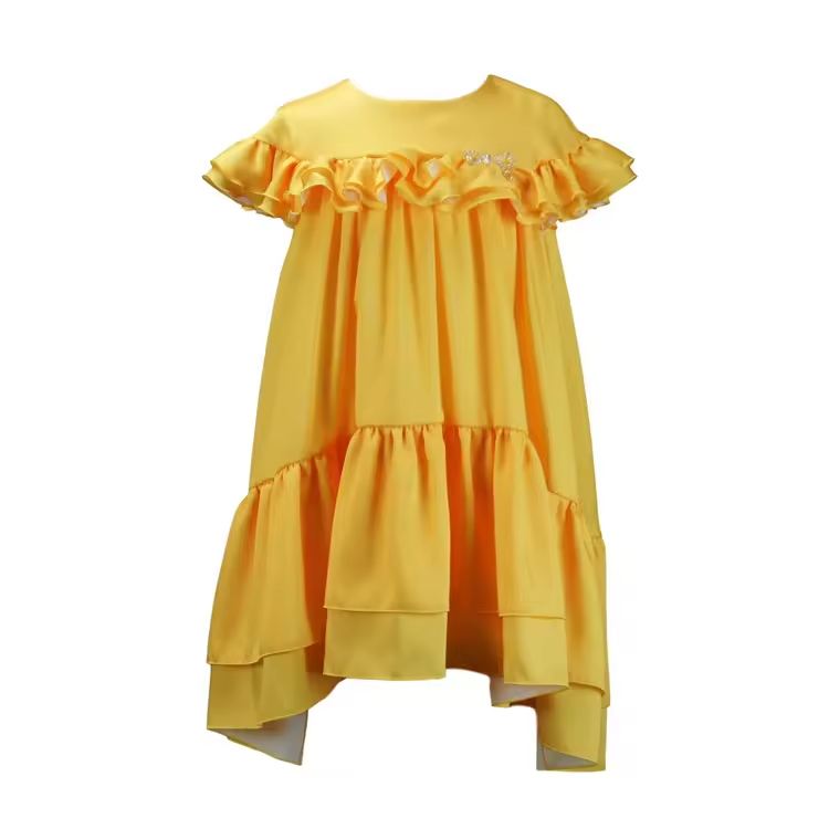 Latest Fashion Design Yellow Color Kids Clothes Girls Dresses Ruffles Elegant Summer Princess Party Girl Dress 2025