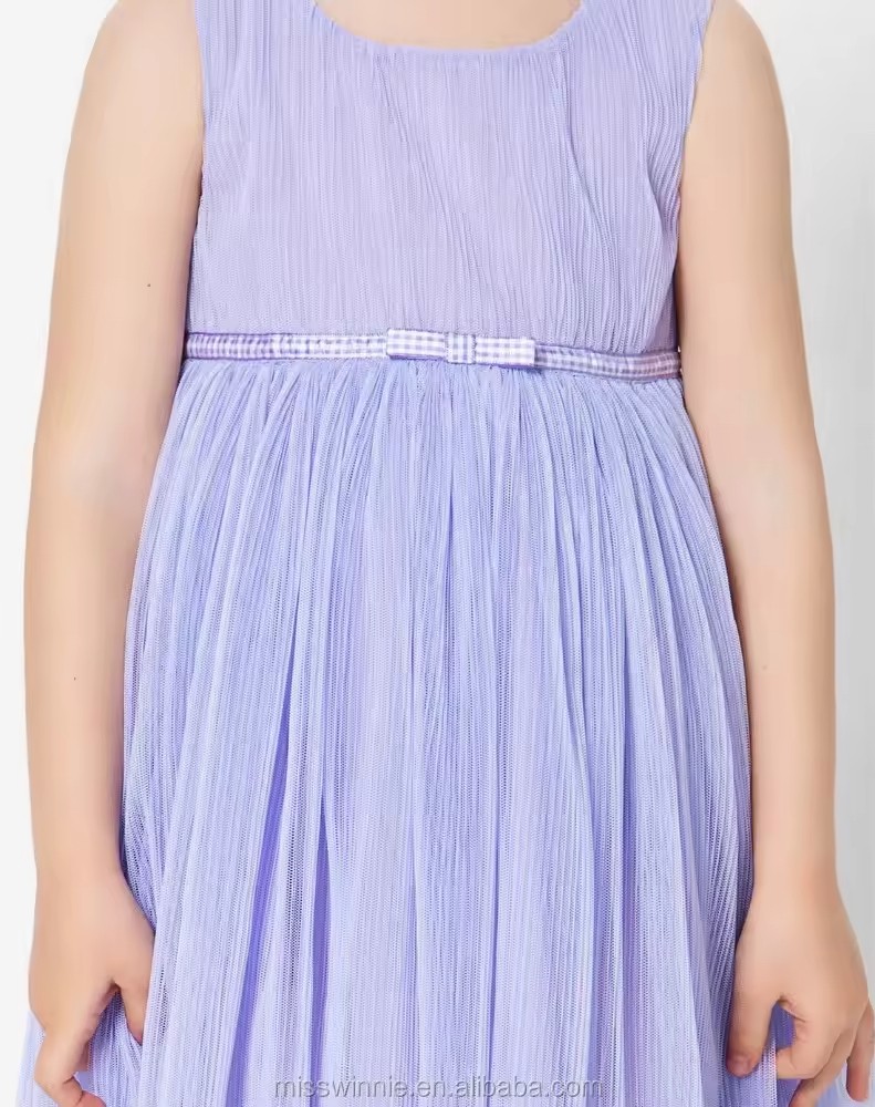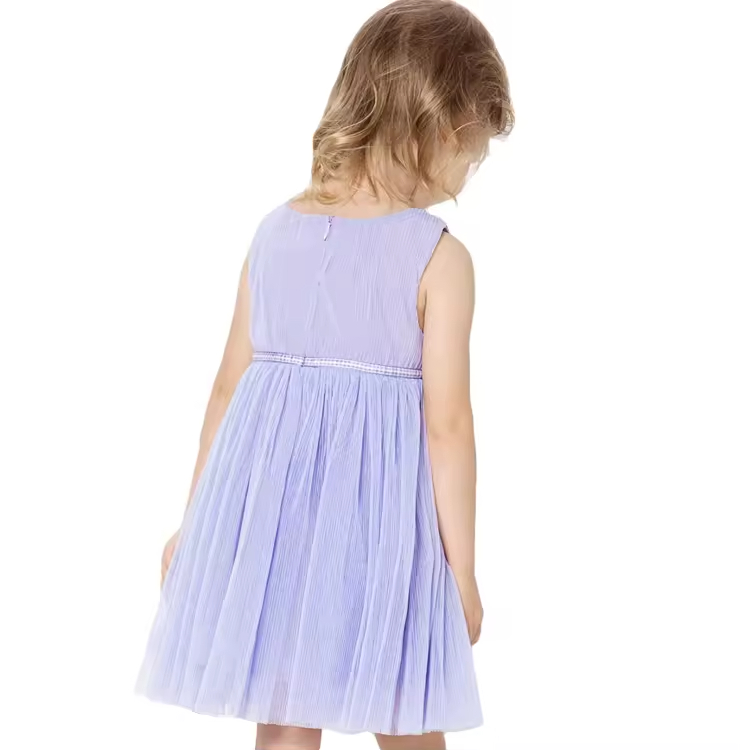 /New Model Sleeveless Light Purple Summer Dress for 11-Year-Old Girl Breathable Casual Backless Frock Design ODM Supply