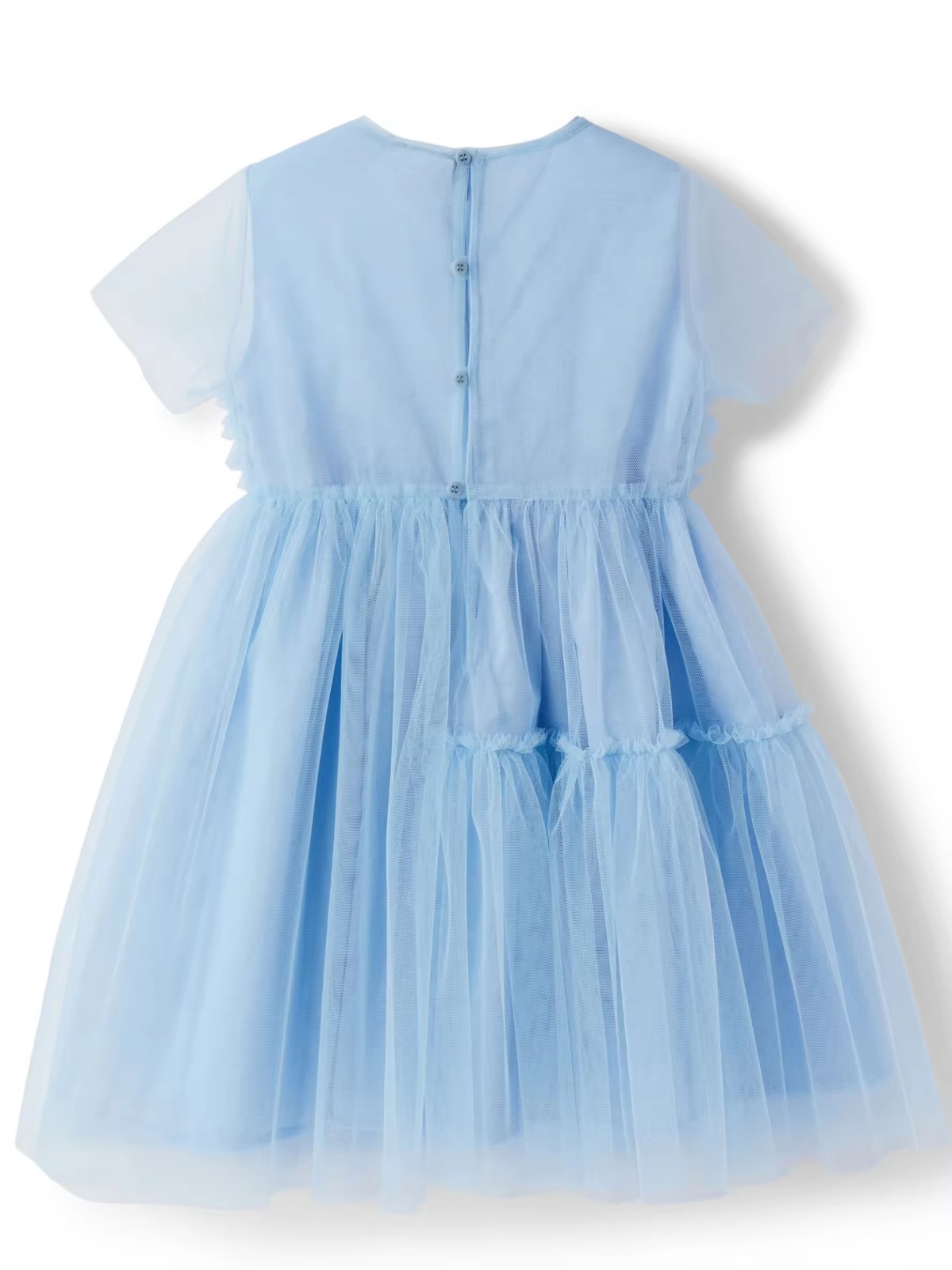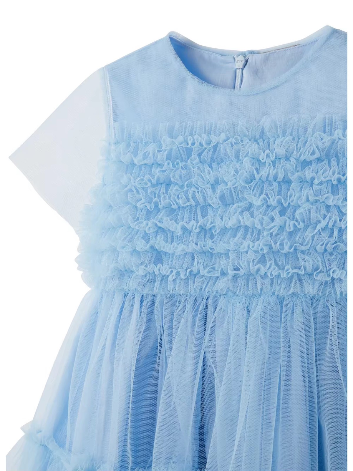 Customizable Blue Gauze Girls Tutu Dress with Ruffles Wholesale Age Group Children Season Summer Pattern Type Solid
