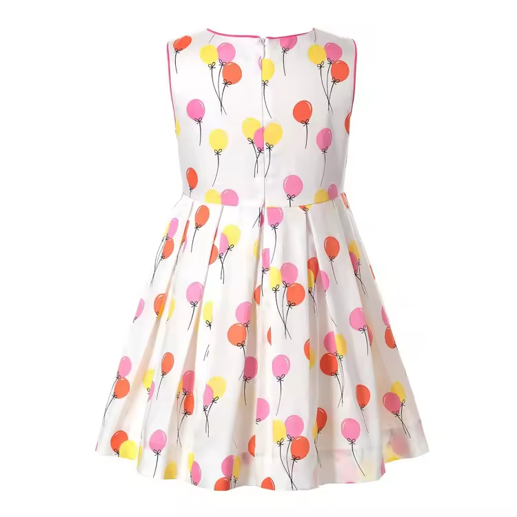 2025 Hot Sale High Quality OEM/ODM Lovely Cotton Sleeveless Summer Dress Balloon Print Elegant Casual Girls' Dresses With Bow