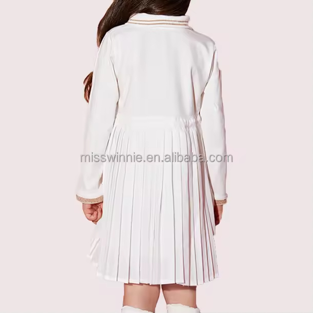 1.Girls Dress in White/black color, quality cotton fabric and a vintage style.