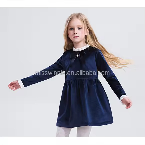 Private Label Brand European Style Kids Girls Clothes Child Baby Dress Model Kids Sweater Dress With Pleat