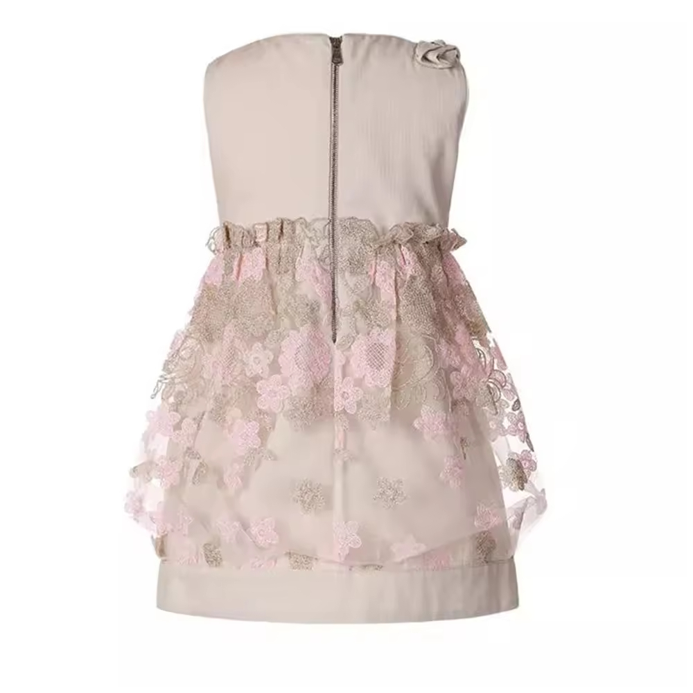 /Children's Floral Cotton Wedding Dress Girls' Formal Knee-Length Summer Wear with Flower Decoration ODM Supply