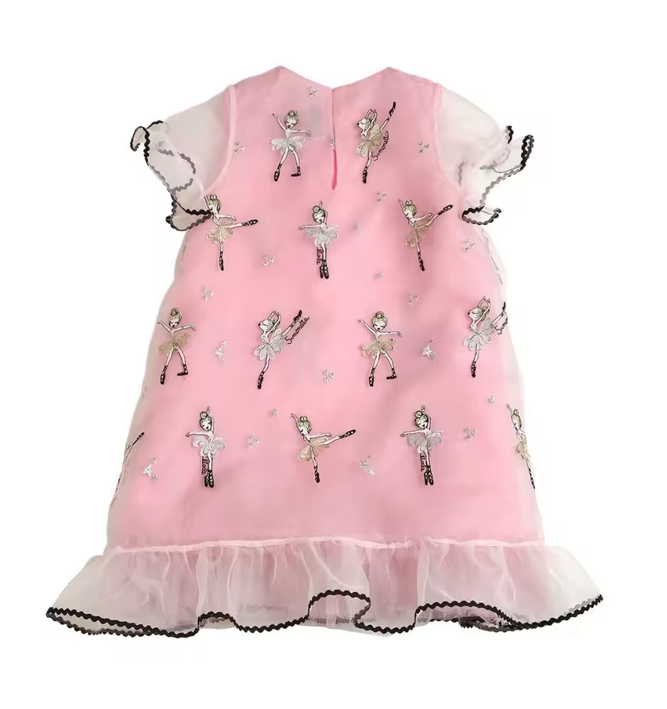OEM ODM Children Clothes Chiffon Fabric Embroidered Technics Casual Style Short Sleeve Kids Girl Dress