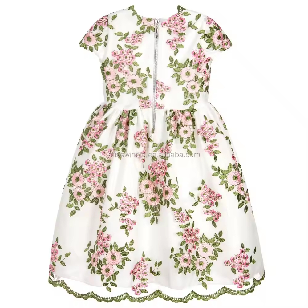 Children Girl Puffy Dress Flower Pattern Cap Sleeve Chiffon Fabric Casual Style